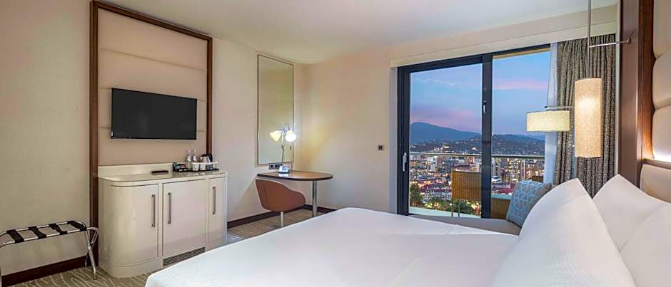 King Guest Room comes with a stunning view of the city and the lake. Guests will enjoy a good night sleep in the King-sized Hilton Serenity Bed and refresh in the spacious bathroom with a separate bathtub and a walk-in rain shower.